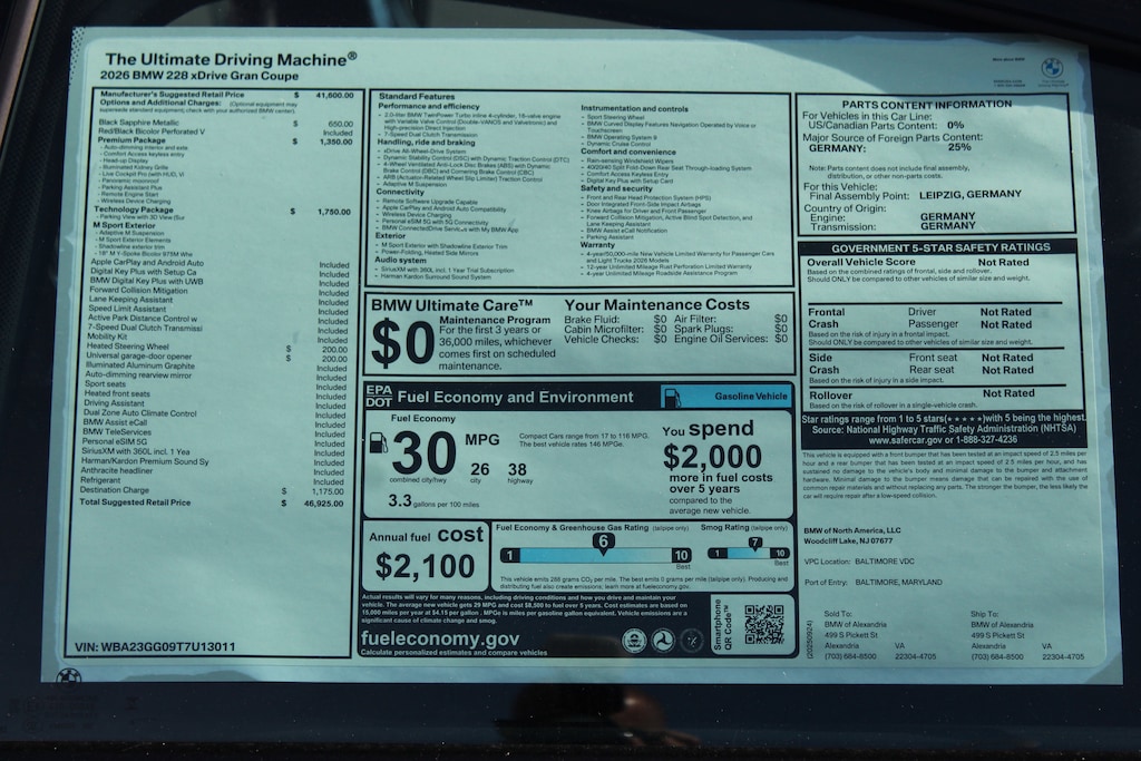 Some credits/incentives are only available through BMW Financial (or other financial institution) and may not be utilized if customer pays cash and/or chooses to finance with any other lender or bank. See center for complete details. While we make every effort to ensure the data listed here is correct, there may be instances where credits, incentives, options or vehicle features may be listed incorrectly as we get data from multiple data sources. BMW Maintenance Program coverage, with one exception, is not transferable to subsequent purchasers, owners, or lessees, call dealer for details.*