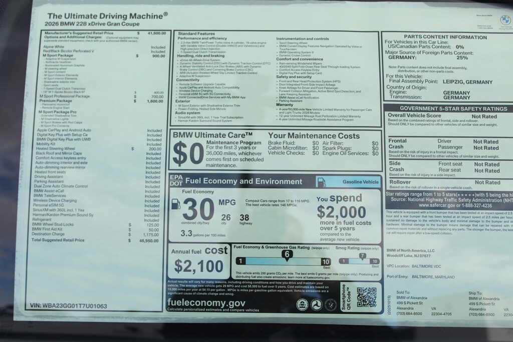 Some credits/incentives are only available through BMW Financial (or other financial institution) and may not be utilized if customer pays cash and/or chooses to finance with any other lender or bank. See center for complete details. While we make every effort to ensure the data listed here is correct, there may be instances where credits, incentives, options or vehicle features may be listed incorrectly as we get data from multiple data sources. BMW Maintenance Program coverage, with one exception, is not transferable to subsequent purchasers, owners, or lessees, call dealer for details.*